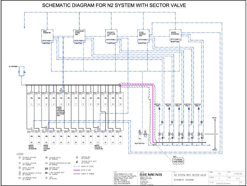 Đường kính ống dẫn khí và kích thước vòi phun được tính chính xác nhờ phần mềm hỗ trợ sao cho thời gian xả khí của hệ thống không dưới 5 giây và không quá 10 giây.